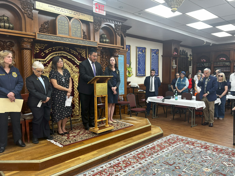 A who’s who of elected officials and rabbis gathered with more than 100 people to grieve the six hostages recently murdered by Hamas. The standing-room event was held in the Beth Gavriel Bukharian Congregation in Forest Hills on Monday, September 2.