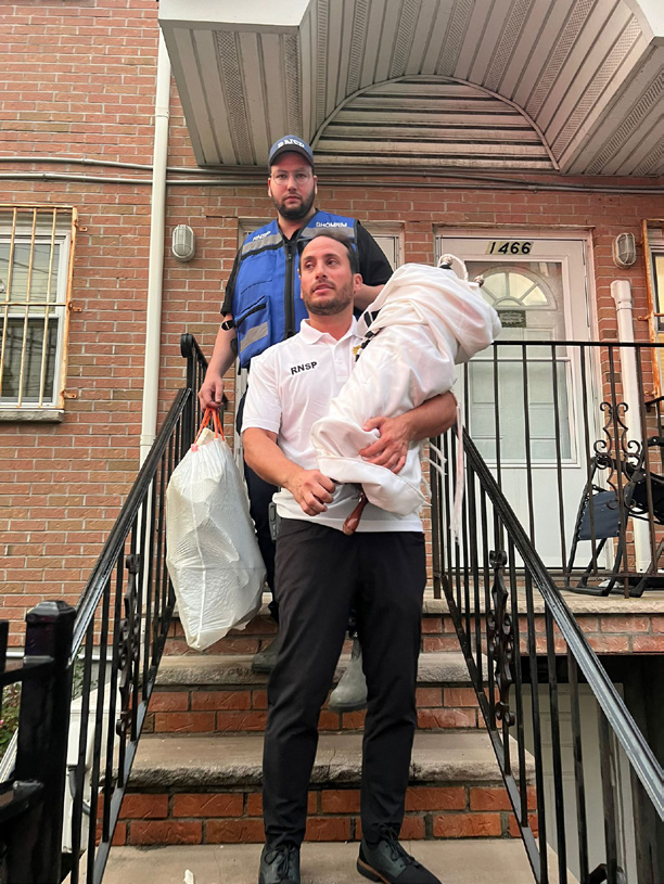 Finally, at midnight, a vehicle was spotted that matched the vehicle seen in the video of the burglary. After many hours of gathering video footage, the RNSP units were able to find the license plate that was on the burglar’s vehicle, which matched the front plate of this vehicle that was just found. That entire night, Shomrim members surveilled the vehicle from a distance. Early the next morning, the vehicle left its location and went to Brooklyn, where the driver parked and went to work. RNSP units kept eyes on the vehicle, while sharing all their information with the NYPD’s Major Case Squad detectives. The detectives came to Brooklyn, as well, and watched the car along with the RNSP units.
