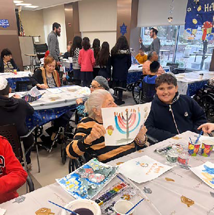 Margaret Tietz was fortunate to have the support of many groups that made Chanukah truly special. The chag began with students from Rabbi Yossi and Dina Blesofsky’s Chabad School of Northeast Queens, who created beautiful art projects with the residents and sang traditional Chanukah songs. The heartfelt interactions between generations brought smiles to everyone involved.