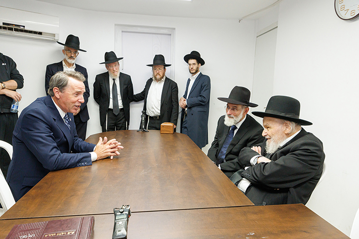 Ambassador Walker visited Eretz Yisrael last week where he held a lengthy, productive meeting with HaGaon HaRav Moshe Hillel Hirsch, shlita, Rosh Yeshivas Slabodka. In addition, he visited the historic Dirshu testing site where he not only observed the test takers being tested on most of Shas and Shulchan Aruch but also participated in an important panel discussion on antisemitism and what to do about it, with Dirshu members from numerous countries. Dirshu members from Australia, England, Antwerp, Holland and the United States gave the ambassador firsthand reports about the rise of antisemitism in their respective countries and what has changed in recent years. The Ambassador was accompanied by Dirshu’s Nasi, Rav Dovid Hofstedter, to Rav Hirsch’s house and to the Dirshu test. (See box for the opinion piece that appeared on Fox News following Mr. Walker’s visit to Eretz Yisrael.)