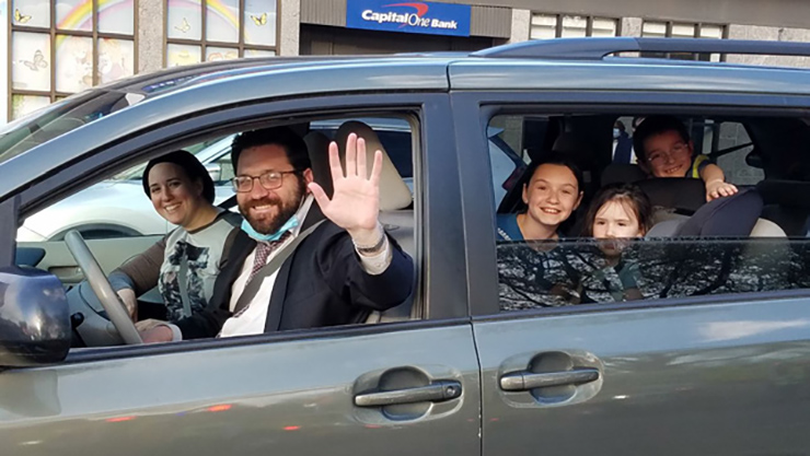 Compared to the bonfires, barbecues, and late evening concerts of the previous year, a mobile concert does not seem as disruptive. DJ Jordan Benjamin stood in the back of an open van for an hour and a half at his turntable with a cameraman filming his performance. “I’ve been deejaying for 15 years. I’ve done party buses, but to do it from the back of a van was a first for me,” said Benjamin. “I was excited to bring simchah and joy to the community.”