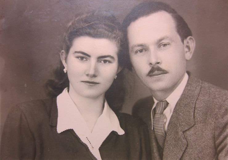 A friend suggested that Menachem become an apprentice glassier, which would give him skills as well as the opportunity to work outdoors. Menachem did become an apprentice, and he found that he enjoyed being outside and meeting people. During that time, a young woman broke a glass door in her house. That young woman, Leah Gruenberger, had survived Auschwitz, and so had her sisters and her father. Her family and Menachem’s had known each other before the war.