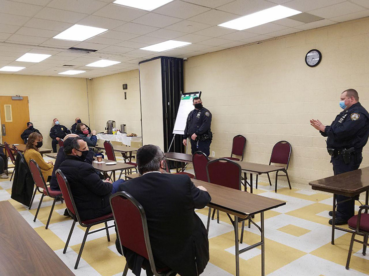 The Build the Block neighborhood safety meetings are a form of Neighborhood Policing that seeks to close the divide between cops and community. But it can only succeed with your support of the community. At the Build the Block meeting, a strategic session was held between local police officers and the people they serve. The meeting had two simple goals. First, identify the public safety challenges of our specific neighborhood, and then to discuss potential solutions. With the upcoming holiday season upon us, the officers explained how a larger, more noticeable police presence would be seen in the streets of our neighborhoods and how the NYPD would pay special attention to all synagogues. This was an effort of the department to take important steps towards improving trust, collaboration, and safety through Neighborhood Policing. The officers asked questions of the audience and discussed recent crime levels, car break-ins, and home invasions. The discussion about issues in our community was well-received and allowed residents to have the opportunity to voice concerns about specific safety and policing challenges.