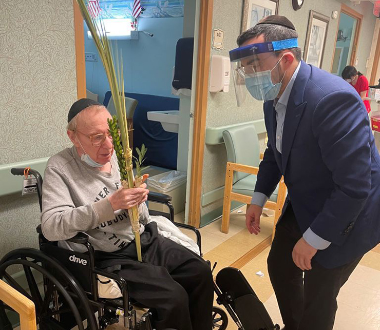 Avi Cyperstein, Vice President of Chaverim of Queens, under the guidance of Jack Feldstein, Assistant Administrator, visited the Jewish residents on each floor of the Forest Hills facility during Chol HaMoed. Cyperstein first visited the facility with Simon Sebag, Jewish liaison to Public Advocate Jumaane Williams, and ahead of Shabbos Chol HaMoed, I joined Cyperstein on a subsequent visit to the center. These visits provided the residents a chance to make the brachah on the Sukkos staples.