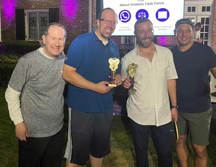 Teams of three battled it out to take home the elusive Spin to Win Trophy. This year, Steven Farbman, Yaron Markfeld, and Howie Hershkovich defeated the Adventure Media team in the championship match. As the tournament played out, observers enjoyed a lavish barbecue catered by Graze Smokehouse, and a riveting program.