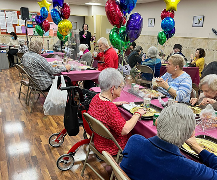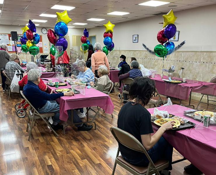 Margaret Tietz shared the holiday in turn with many seniors in the community. At the close of the year, the center sponsored a holiday party at the Young Israel of Forest Hills Senior Center. Hindy Chanales, Program Director, did a wonderful job pulling this together with her great staff, bringing together the seniors for the first time since the pandemic in a beautifully decorated atmosphere.