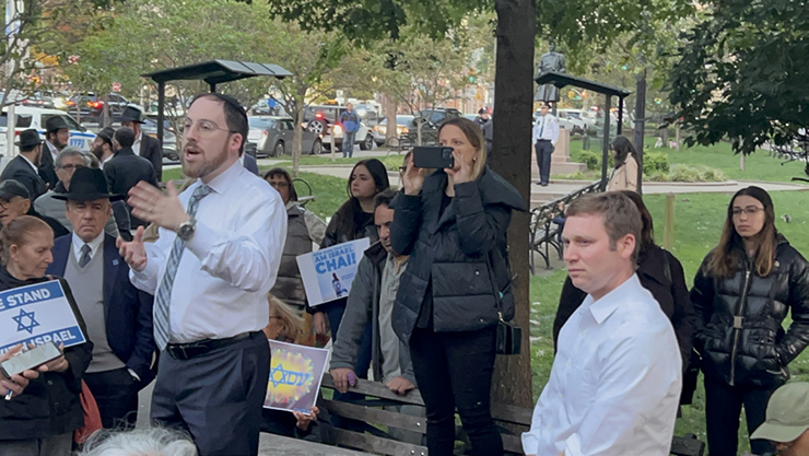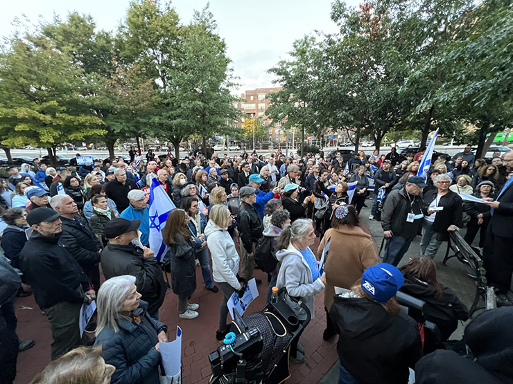 More than 200 people attended a candlelight vigil and rally for Israel at MacDonald Park in Forest Hills on Monday, October 9, quickly organized by a former candidate for public office and a lawyer, Ethan Felder, who said that Hamas’ attack on Israel “was an attack on all of humanity and the universal values that bind us together.”