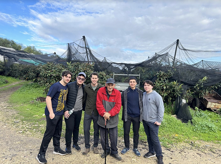 On the final morning of their trip, the group went to volunteer to prune Loquat flowers at Moerman Farm located in Karmei Yosef. The massive farm, which typically employs between 20 and 40 workers each day, is down to a labor force of zero due to the ongoing war. The only workers are the volunteers who show up each day. They met with Amiram Moerman, the 88-year-young founder of the farm, who told the story of how he cleared out the massive area of farmland in the early 50s. The group was trained to prune effectively by Amiram’s stepson, Tomer, who runs the daily farm operations. The group labored in the mud, with bees and mosquitos about, to make a small contribution to the crisis farmers are experiencing across Israel.