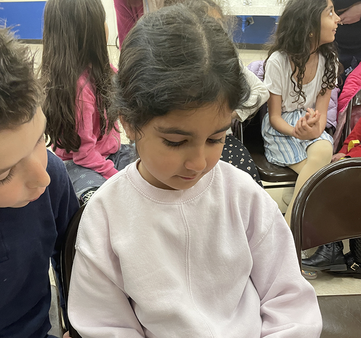 Yaron introduced himself to students in grades one through six, telling them that he had been an art teacher and blacksmith in the town of Yated, a small Israeli community near the border of Gaza. He told his fascinated audience about a time he accidentally sat on a fork, which bent. Aimlessly playing with the bent fork, he shaped it into a cat, and came up with the idea of teaching “students like me, who have trouble in school,” how to work with metal as a therapeutic method to relieve stress. As he told this story and throughout the presentation, he idly shaped a stash of metal forks into cats, bracelets, scorpions, and other fantastic sculptures that he gave to lucky students, much to their delight.