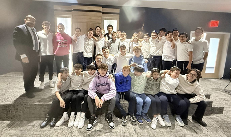 The eighth-grade boys remained in the Beis Midrash with Rabbi Slomnicki and their rebbeim, where they reminisced about the transformation of the high school building, which they once called their middle school. Rabbi Slomnicki then led a lively and thoughtful game focused on self-reflection and peer appreciation.