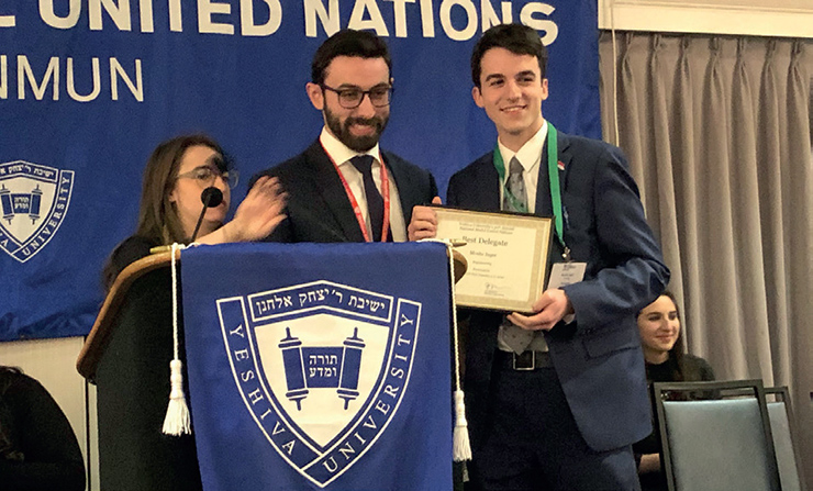 Congratulations to Moshe Inger (’20) on winning a Best Delegate award for his work on the International Criminal Court, Yeshurin Sorscher (’21) on winning an Honorable Mention for his work on the Disarmament and International Security Committee, and Ezra Nissel (’20), who was recognized by the Middle East Summit. The team has already started preparing for its next competition at the Heschel School in May.