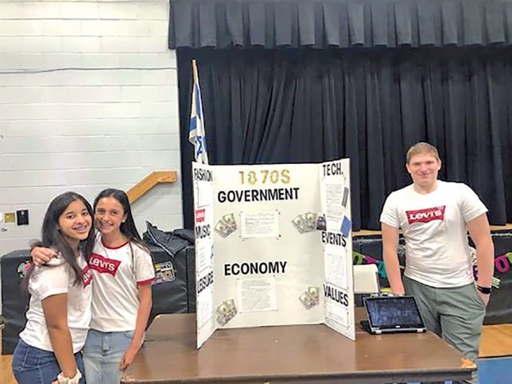 This past Monday, the seventh and eighth graders displayed their decade projects at the Social Studies Decades Fair. Each group was given a different decade and put many hours of effort and research into their amazing final products. Many parents and siblings came to the fair and had a great time seeing their child’s/sibling’s projects. There were tri-fold boards as well as a digital component that each group created. The digital component also included audio and music clips. Students dressed up from their decade. The students learned a lot and had fun!