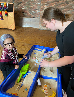 On Friday, the seventh-grade girls had the exciting opportunity of going to the WH ECC to run the Purim Carnival. The seventh-grade girls were randomly selected to run carnival booths. The booths consisted of face-painting, building blocks, sand surprise, matching games, and pin the crown on Queen Esther.
