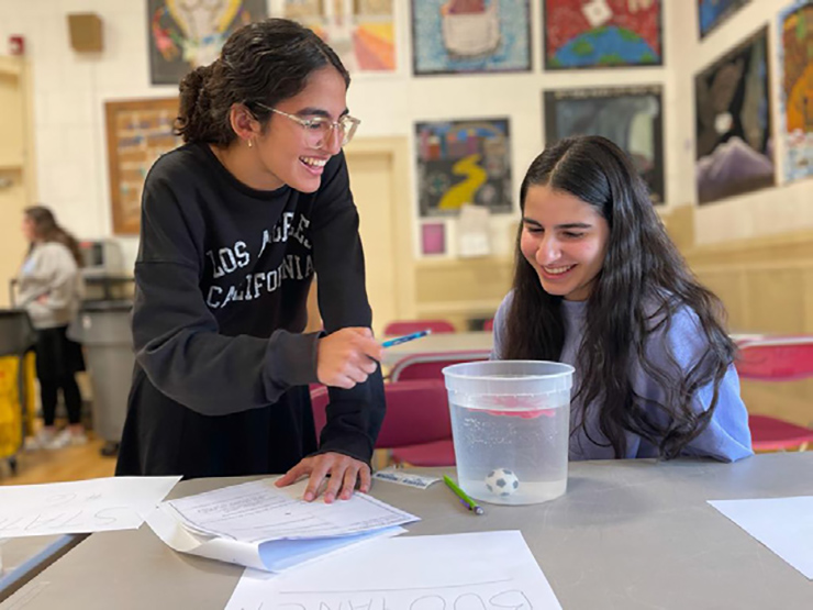 Mrs. Aviva Lifshitz’s Dynamic Planet students specifically learned about the properties of water, in particular the concept of buoyancy. They had to apply their knowledge of why certain objects float or sink when placed in water. Student participants were Cloe Dershowitz, Julia Holchendler, Atara Razi, and Avital Razi.