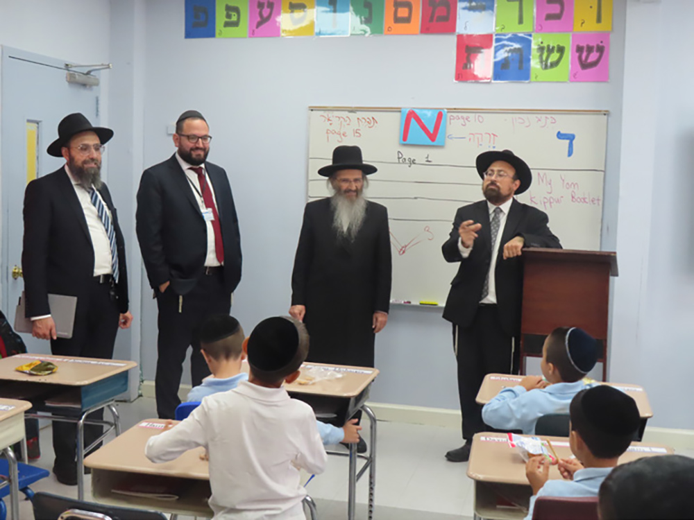 The esteemed Rabbi Yigal Haimoff visited YSZ elementary school to give chizuk and beautiful brachos to the talmidim and talmidos as they embark on a new school year. Rabbi Haimoff was welcomed by rebbeim, teachers, and students as he toured the different divisions of the school with Rabbi Ephraim Ben Mordechai, Menahel, and Rabbi Avraham Fridman, Principal.