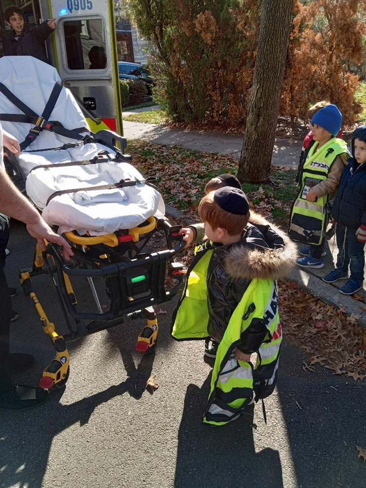 In conjunction with learning the alef-beis letter hei, the kindergarten boys of Yeshiva Tiferes Moshe were treated to a visit from Hatzolah of Queens and Great Neck volunteer members Mr. Yehuda Benjamin (the brother-in-law of kindergarten student Yaakov Savetsky), Mr. Avi Stern (the father of two YTM boys), and Mr. Moshe Teicher (a dedicated community servant). Their visit coincided with Shabbos Hatzalah, which annually falls on Parshas VaYeitzei.