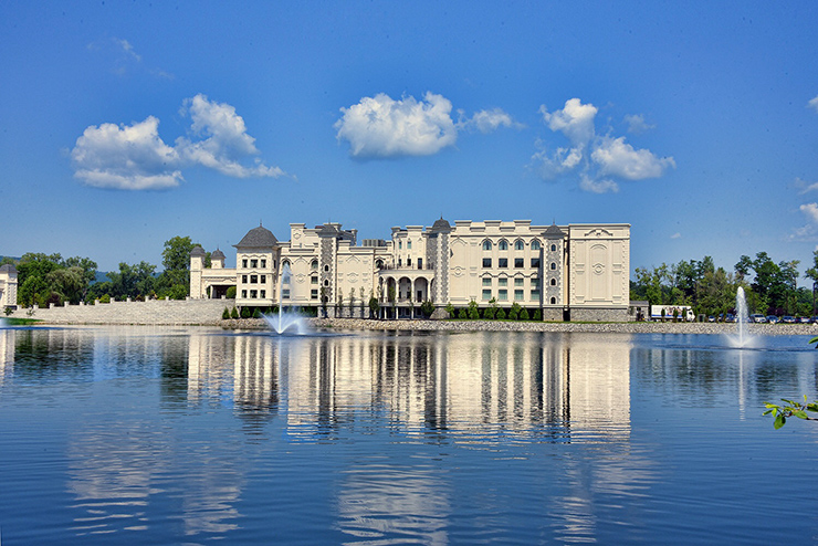 There is plenty picturesque here as well. The Legacy Castle is of a neo-classical French beaux-arts style architecture, a blend of different architectural elements abounds. There are towers, circular balconies with French wrought-iron railings, an outdoor terrace above a porte-cochere, and porticos supported by classical style columns. A peninsula that juts into one of our two lakes provides a backdrop that is serene.