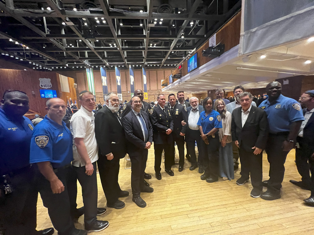 The briefing was once again held in memory of Reb Yankie “Jack” Meyer, founder of Misaskim, whose yahrzeit was this past Monday evening. The group’s president and newly installed CEO, Matis Soffer, were in attendance. I had the honor of introducing them to the commanding officers of both the 107th Police Precinct in Kew Gardens Hills, Captain Moe Tsang, and the commanding officer of the 102nd Police Precinct in Kew Gardens, Deputy Inspector Jeremy Kivlin. Special acknowledgements are also given to Rabbi Shlomo Nisanov, 107’s Clergy Liaison; Rabbi Daniel Pollack, 102’s Clergy Liaison, Alan Sherman; Queens Shmira Coordinator Avraham Pinkhasov; Simon Sebag of the Public Advocate’s office; and a host of other dignitaries who were present for the briefing.