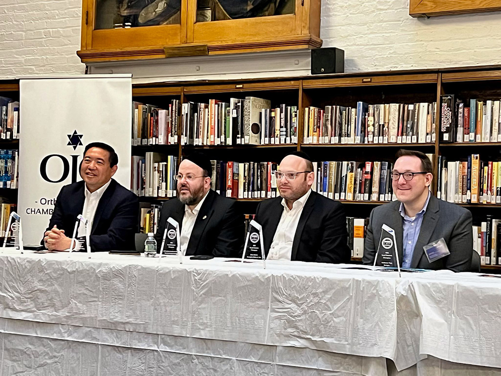The event included the participation of NYPD Inspector Richie Taylor; Rabbi Mendy Miroznick, EVP, Rabbinical Alliance of America; and Joel Friedman and Naftuli Moshe Indig of the chasidic community. Joel Eisdorfer, a senior advisor to Mayor Eric Adams, was recognized with the Small Business Advocacy Award for his work on behalf of small business recovery efforts. Eisdorfer excused the mayor’s absence, as the funeral for New York City Firefighter Timothy Klein was underway and, on behalf of the mayor, led a moment of silence followed by pledging a strong commitment to restart our small businesses and help them flourish.