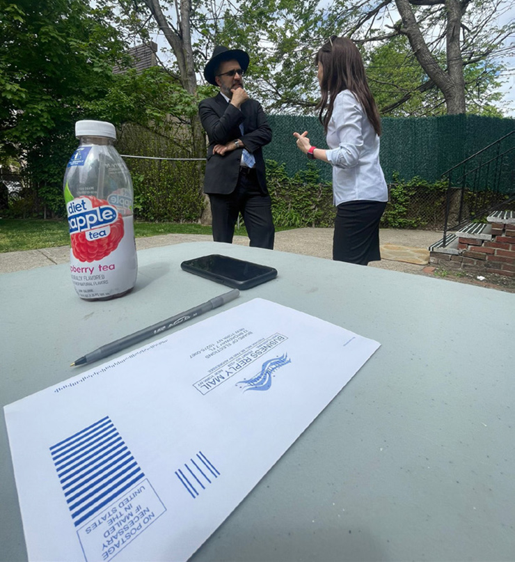Friday, June 3, marked the voting registration deadline for the June 28 Primary Election. Ahead of this deadline, a united voter registration drive was held at Yeshiva Kesser Torah in Kew Gardens Hills on a recent Wednesday afternoon. The shul, under the leadership of Rebbetzin Trani Rosenblatt and Rabbi Avraham Garber, graciously opened its doors to Rabbi Yeruchim Silber, Director of New York Government Relations for the Agudath Israel of America, and Rabbi Yaniv Meriov, CEO of the Chazaq Organization, to encourage the steady stream of congregants to have their voices heard on Election Day.