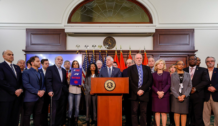 After Manhattan DA Alvin Bragg offered a disgraceful plea deal of just six months in jail to Waseem Awawdeh for savagely beating Joey Borgen simply based on his faith, Nassau County Executive Bruce Blakeman held a sizeable press conference to shed light on anti-Semitism this past Thursday, January 19. The room at the Ceremonial Chamber of the Theodore Roosevelt Executive & Legislative Building in Mineola was filled with county officials and activists who rallied in support of Borgen, with the general message addressing DA Bragg: “We won’t stand for such bail nonsense!”