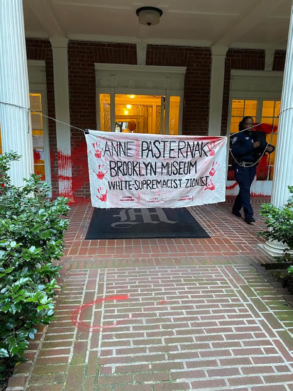 Pro-Palestinian activists vandalized the homes of Brooklyn Museum leaders, including its Jewish director, by hurling red paint and labeling her a “white-supremacist Zionist.” Diplomatic buildings for Germany and the Palestinian Authority were also targeted. Mayor Eric Adams condemned the attacks as antisemitism, and Senate Majority Leader Chuck Schumer emphasized the hate-driven nature of the vandalism. The vandalism followed a protest by pro-Palestinian groups against a New York City exhibition memorializing victims of the October 7 Hamas attack. This protest drew broad condemnation, with US Rep. Alexandria Ocasio-Cortez calling it blatant antisemitism. The New York Police Department is investigating the incidents, while Jewish leaders expressed concern over rising antisemitic rhetoric and violence.