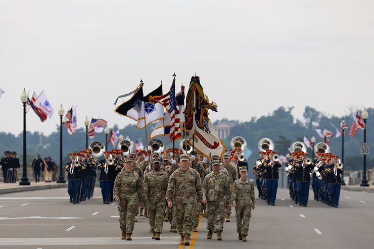A grand military parade in Washington, D.C., marked the U.S. Army’s 250th anniversary, featuring nearly 7,000 soldiers, 150 vehicles, and over 50 aircraft along Constitution Avenue. The event, the largest military parade in the capital since 1991, included historical reenactors in Revolutionary War uniforms, 28 Abrams tanks, and flyovers with World War II-era planes like the B-25 Mitchell. A festival on the National Mall from 11 a.m. to 6 p.m. showcased military hardware, followed by a 7:30 p.m. concert at the Ellipse and a fireworks display. Despite rain, thousands attended, though some left early due to heavy security and weather.